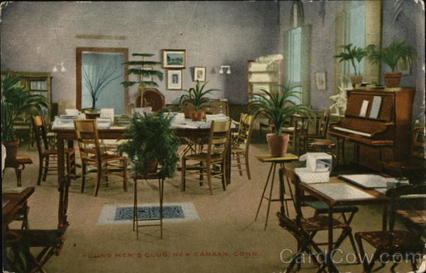 Front: NIE YOUNG MEN'S CLUB; NEW CANAAN, CONN. 7 Back: PUB. BY F. A. DICKERMAN, NEW CANAAN, CONN. AN 19 FOORM 1909 CONN IN 4.00 Mr. Cha. Neese. 1 P. M. U.S.POSTAG Marin suarl U.S.S. Mississiffer m.y. жу