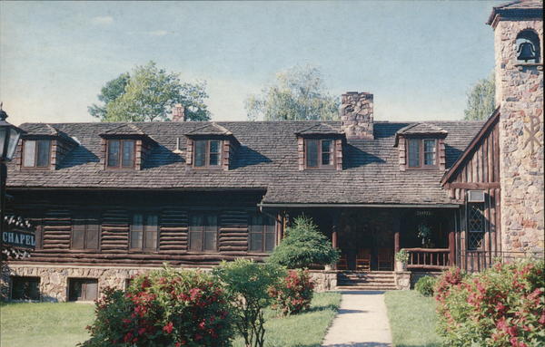 Front: CHAPEL CHAPEL- Back: DURWARD'S GLEN Rustic Log Chapel and Retreat Center Nestled in the scenic Baraboo Bluffs P.O. Box 41, Merrimac, Wisconsin 53561 (608) 356-4523 KOLORVUE by Artvue Post Card Co., 160 Fifth Ave., New York, N. Y. 10010 HERE