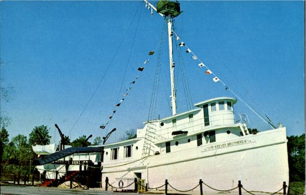 | "The McKeever Bros." built at Noank, can., in 1911, of the finest northern pine and oak, saw service as a trawler most of her life and served her country during World War II on submarine patrol. Now this sturdy old ship, renamed the "Flagship", after extensive remodeling into a restaurant serves fine steaks, seafood and cocktails in a setting enhanced by mellowed old wooden beams and planking, brass fittings and soft music, Truly a "red Carpet" setting! |