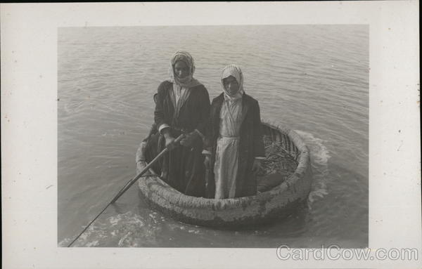 Arab Men Fishing in Gaeffa/Guffa (Round Boat)