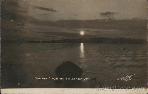 Front: MIDNIGHT SUN, BERING SEA, ALASKA. JUNE ÷LOMEN BROS.* NOME. Back: NOME OCT13 10AM BLASKA 1915 CENTU NAME AND ADDRE Oct 12/12 Nem Clocken Miss Mary Rearda 62te 6th Street Portland & 928 Tibber ε