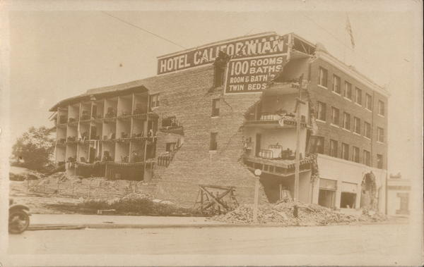 Front: TARY HOTEL CALIFORNIAN 100 ROOMS BATHS ROOM & BATH'S TWIN BEDS Back: AAZOA = STAMP = 0 ► HERE O VAZO
