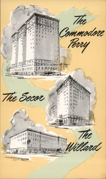 Front: ***** SER ELLÉKÁRSINA ****** HP G"| APN n nuw Magon: The Secor ODPRANVE Commodore Perry _________ / ¯T=T KANSKANAAN LEVAN MALALAY *49 Willard Back: TOLEDO'S FINEST HOTELS ALL THE CONVENIENCES THE MODERN TRAVELER HAS COME TO EXPECT! HERE