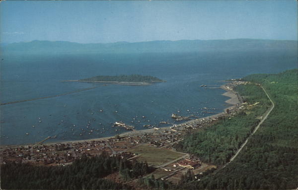 NEAH BAY, WASHINGTON. fishing resort in the U.S.A. Indian reservation near Cape Flattery. C-377 The most northwesterly Located on the Makay 29470-B Aerial color by Clifford B. Ellis Pub. by Ellis Post Card Co., Arlington, Wash. MYACE. WEST HERE