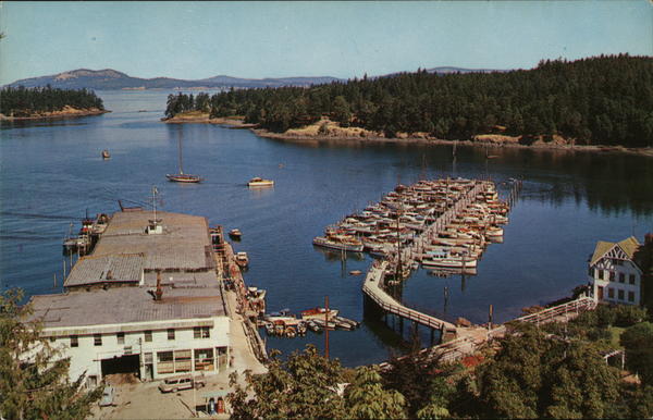 ROCHE HARBOR BOATEL. Most popular boating harbor in the northwest is located on San Juan Island, Washington. C-558 Ektachrome by Bob & Ira Spring Published by Ellis Post Card Co., Arlington, Wash. 54517 Address