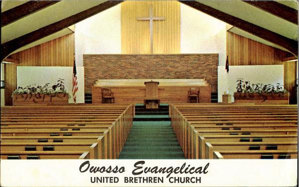 Front: Owosso Evangelical UNITED BRETHREN CHURCH Back: MI. M76623 Don Martin 120 N. Brady - Corunna, Mich. L+ HERE