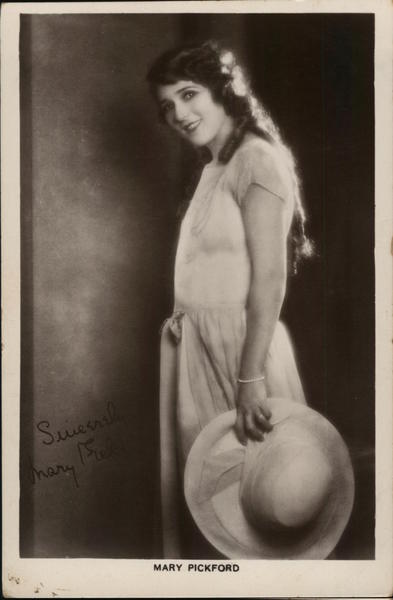 Front: Suiesrali Fiel mary MARY PICKFORD Back: 12 No 112a ' Picturegoer" Series, 88, Long Acre, London -This is a "Real Photograph."- BRITISH MANUFACTURE CARD