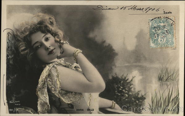 Front: Cont ma REUTLINGER 191 | 17 ANNA HELD Divan 15 Mars 1906. Scala POSTES ESTIGCAMOS S.I.P. Back: Pacevin Ma Marie Louise Soievin Rue du Hock Cancale گی (Mlect Vilaine)