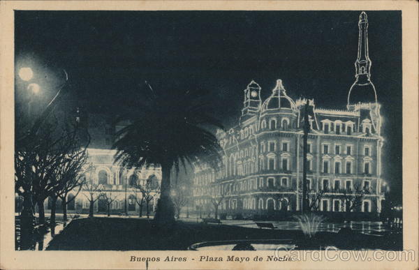 Front: in 0. ហក ក 56 in od woodnt V²]]] Buenos Aires - Plaza Mayo de Noche Back: No 10 Edicion G. Bourquin y Cia, Buenos-Aires. Reproduccion prohibida por ley. 1.-