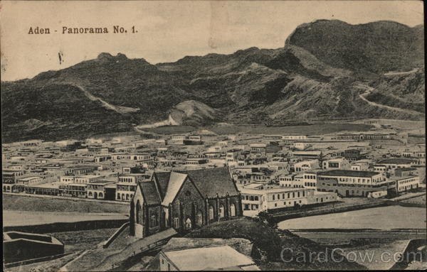 Front: Aden - Panorama No. 1. POU ACRO hippine 138 111101 Back: Carte postale. Hôtel de l'Europe Turkish Shop I. BENGHIAT SON, ADEN. CIA POS E&P 3278 ANNA 113 MY LE Meater Spring • Farm Miracusa dser Donnet England 47 949 u