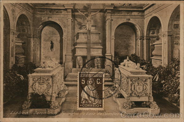 Front: DAS PRAIAS DO SAL OF REPVBLICA PORTVGVESA 5 C. CADDAR-COS * CORREIO ★ Lisboa Jeronimos. Tumulos de Luiz de Camões e Vasco da Gama Back: Bilhete Postal r 29357