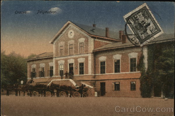 Front: ROMANIA POSTA Pályaudvar. Orsova. BANI CATEDR APIEGUMINO JULH 人口 X Back: K J. Bp. Torv. védve, 1919/23 SGLE LEVELEZŐ-LAP