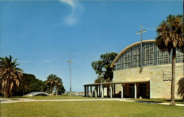 | Prince of Peace Catholic Church, and 208 ft. Beacon of Faith stainless steel Cross on the grounds of famous Mission of Nombre de Dios in sty. Augustine, Florida. The church was built in 1965-66 to honor Mission's 400th anniversary. The church and Cross are dedicated to Beacon of Faith and True Peace. |