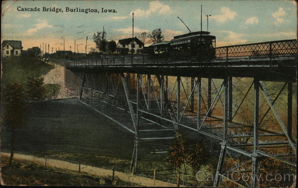 Front: Cascade Bridge, Burlington, Iowa. ce TEAM YA Back: PUBLISHED EXPRESSLY FOR S, H. KNOX & CO.. Uncl. Martin Cunna фами Greeting to all and Aunt Trimma LINGTO 2- 1918 BURLI 104 ST Rest 12182 Ranzen Rasmussen age ar th Main St. non deput near