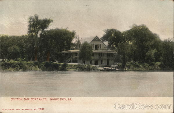 Front: COUNCIL OAK BOAT CLUB, SIOUX CITY, IA. E. O. KROPP, PUB MILWAUKEE, NO. 1897 Back: THIS SPACE IS RESERVED FOR MESSAGE. Post Gara THE SPACE ABOVE IS RESERVED FOR POSTMARK IS. POS- MEXICAN 20