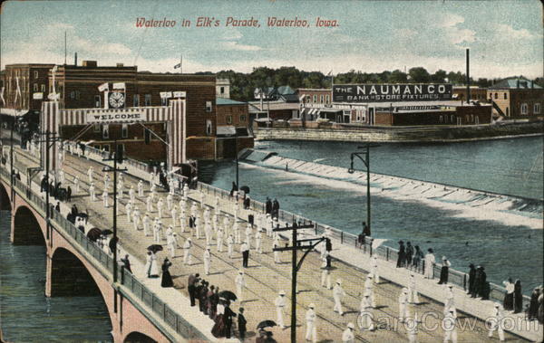 Front: FOP THA 6104 Waterloo in Elk's Parade, Waterloo, lowa. WELCOME THE NAUMANCO. BANK STORE FIXTURES. DARBOR INTERIOR FINION, 777 00000000 Back: (Made in Germany) 4639 less se ******* Reset Printed in Germany