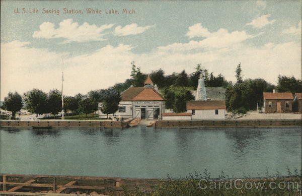 Front: U. S. Life Saving Station, White Lake, Mich. A53 105 U.S.LIFE SAVING STATION Back: C. G. Pitkin & Co., Publishers, Whitehall, Mich. No. 208 Made in Germany TWO CENTS