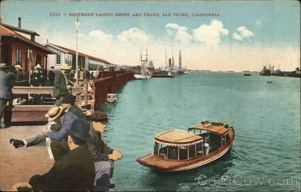 Front: FACE 2561 SOUTHERN PACIFIC DEPOT AND FERRY, SAN PEDRO, CALIFORNIA. Back: MADE IN AMERICA BY EDW.H.MITCHELL AT SAN FRANCISCO.CALIFORNIA. SPACE FOR ADDRESS ONLY