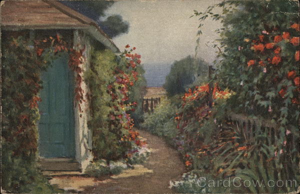 FROM PAINTING BY WM. ADAM A MONTEREY GARDEN COPYRIGHTED BY PALACE DRUG CO. W. T. LEE CO. INC., PRINTERS, MONTEREY, CAL. NAME AND ADDRESS HERE