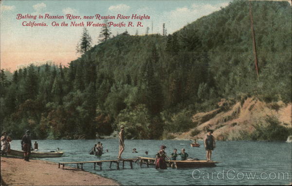 Front: Bathing in Russian River, near Russian River Heights California. On the North Western Pacific R. R. A Back: SAN FRANCISCO * PUBLISHED BY NEWMAN POST CARD CO LOS ANGELES FIST NO N P 11 ON THIS SIDE Cuba 1c 2c