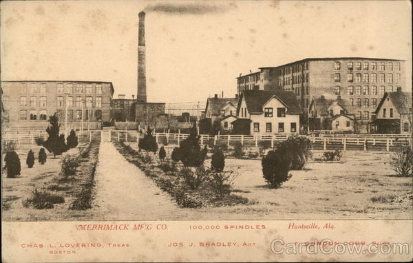 Front: TG J%CERRIMACK MF’G_CO. CHAS.L. LOVERING,TREAS. BOSTON. 100,000 SPINDLES. JOS J. BRADLEY, AGT. Huntsville, Ala. וּוּ הברברוכ הברוורס F.GORDON COBB,S,UPT. Back: FOREIGN, TWO CENTS.