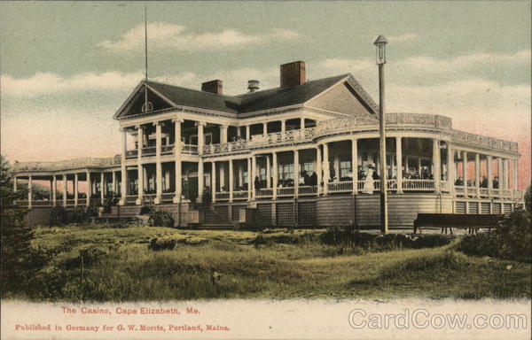 Front: ALEB THAKE The Casino, Cape Elizabeth, Me. Published in Germany for G. W. Morris, Portland, Maine, EA 18.4 Back: 227 (32 Alice 350 Place the Stamp Here: One Cent for United States and Island Possessions, Cuba, Canada and for Foreign. 70241