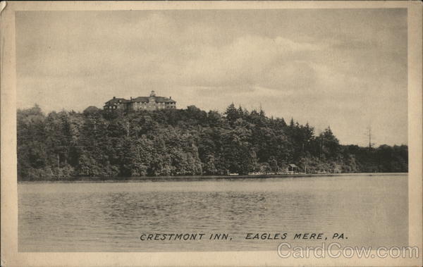Front: CRESTMONT INN, EAGLES MERE, PA. Back: K3- Papa 100 ISSUED IN CONFORMITY WITH ACT OF CONGRESS APPROVED MAY 19, 1898 Eagles Mere, Pennsylvania HERE