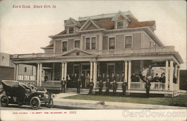 Front: ELK'S CLUB, SIOUX CITY, IA. HAND COLORED. . G. KROF. PUBL. MILWAUKEE. NO 2323 ***** ******** Back: TWO CENTS