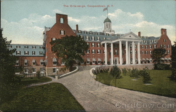 Front: The O-te-sa-ga, Cooperstown, N. Y. 1111 手 Back: No. E 6234 A Pub. by Augur & Lippitt, Cooperstown, N. Y. NEW! N. CHROME LEIPZIG DRESDEN BERLIN United States and Island Possessions, Cuba, Canada and For all other Countries 22794