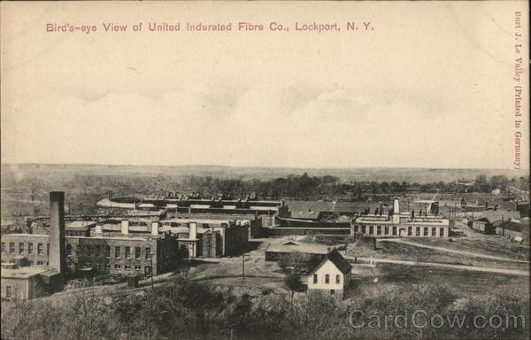 Front: Bird's-eye View of United Indurated Fibre Co., Lockport, N. Y. BAFERI TID =t Burt J. Le Valley (Printed in Germany) Back: UNITED ART PUBLISHING CO., NEW YORK CITY (PRINTED IN GERMANY.) Made in Germany.