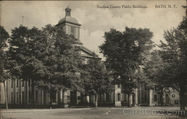 Front: Steuben County Public Buildings. BATH, N. Y. PUBL. BY SAMUEL N. HARPER. Back: MESSAGE ON THIS SIDE 1c. 2c. THE ALBERTYPE CO. BROOKLYN, N. Y.