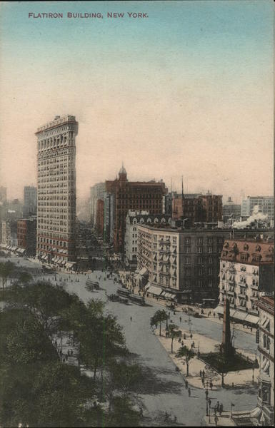 Front: FLATIRON BUILDING, NEW YORK. Extras RR ALBEMARI AVROPAAR EKORRAE ADRERIGET ADMIN Back: Published by The H. Hagemeister Co., New York. Printed in Germany. No. 54. H.H. CÂș. Guaranteed Handcolored. ONE (ENT TWO CENIS