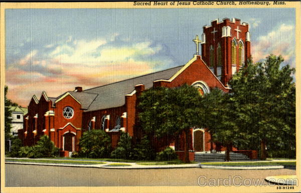 Front: Sacred Heart of Jesus Catholic Church, Haitiesburg, Mis. 3B-H1296 Back: D. E. LEVINE NEWS AGENCY, HATTIESBURG, MISS. 50