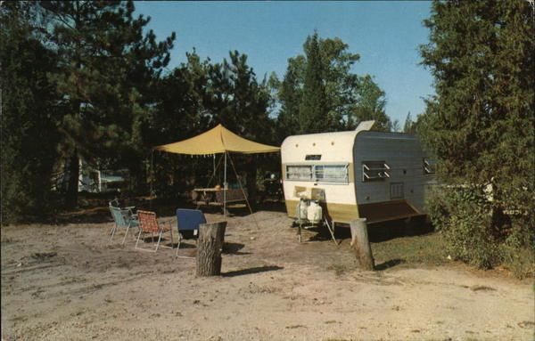 PINERY PROVINCIAL PARK ON BEAUTIFUL LAKE HURON, ONTARIO One of approximately 1500 tent and trailer sites in the 'Dunes' and 'Riverside' camping areas. FC 306 MADE IN EVERGREEN PRESS LIMITED PFIDELITY COLOUR