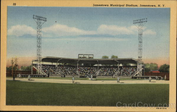 Front: 32 Jamestown Municipal Stadium, Jamestown, N. Y. 4B-H1514 Back: WEAKLEY-OLSON, JAMESTOWN, N. Y.