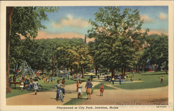 Front: रय OB-H1803 Playground at City Park, Lewiston, Maine Back: J. J. MULLANE NEWS CO., LEWISTON, MAINE اور کے