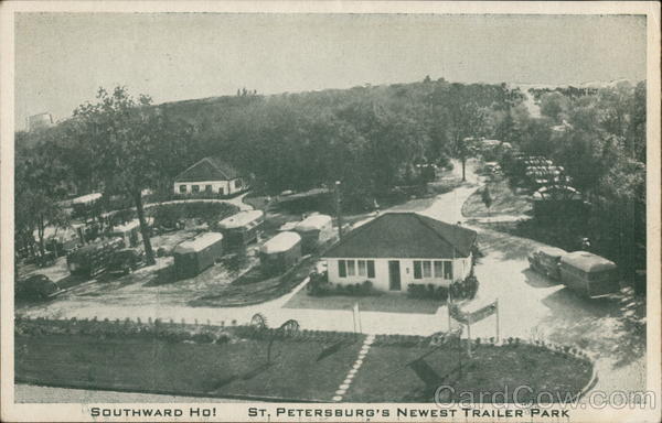 One of Florida's finest Trailer Parks - Shady, Rolling Grounds - Luxurious Tile Baths with Private Dressing Rooms - One mile from the heart of the Sunshine City - One-half mile from grade and High Schools on US 19 - Fifth Avenue North at Eighteenth Street. |