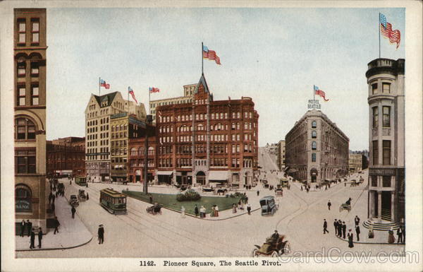 Front: BANK 101 191 SFF FFF *** 15 yaşı 1142. Pioneer Square, The Seattle Pivot. SEATTLE AW BULI CRICKET OFFICE TICA Back: THE LOWMAN & HANFORD CO. SEATTLE POST ARD THIS SPACE CAN BE USED FOR A WRITTEN MESSAGE, USING ONE-CENT STAMP TWO CENTS