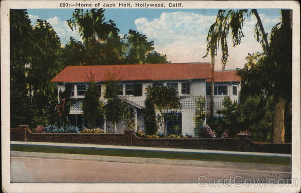 Front: 800:-Home of Jack Holt, Hollywood, Calif. MULL 14319 Back: Pub. by the M. Kashower Co., Los Angeles, Cal. MAX MADEMUSA IN STAMP HERE