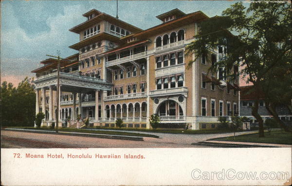 Front: KON 711 11 72. Moana Hotel, Honolulu Hawaiian Islands. 도 Back: GERMANY, Published by the Island Curio Co., Jas. Steiner, Honolulu. os Private Dailing Card CORRESPONDENCE SPACE M. POSTAL CARD TWO CENTS