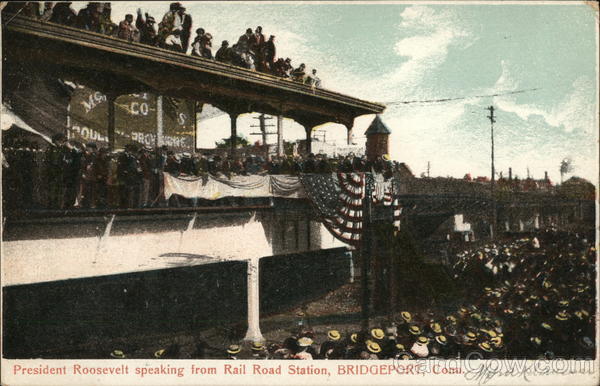 President Roosevelt speaking from Rail Road Station, BRIDGEPORT, Conn. Myra Klanem