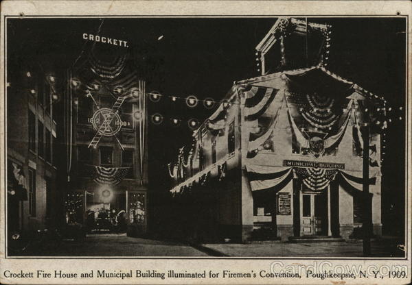 Crockett Fire House and Municipal Building illuminated for Firemen's Convention, Poughkeepsie, N. Y., 1909.