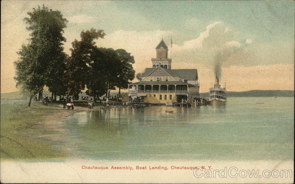 Front: Chautauqua Assembly, Boat Landing, Chautauqua, N. Y. Back: LEIPZIS BERLIN DRESDEN LITHO-CHROME TRADE-MARK ORDER No 10935 United States and Island Possessions, Cuba, Canada and For all other Countries 89687