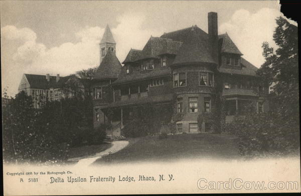 Front: 7.5 Copyright 1905 by the Rotograph Co. A 5181 Delta Upsilon Fraternity Lodge, Jthaca, N. Y. BEL Back: (Germany.) The Rotograph Co., N. Y. City. Two cents