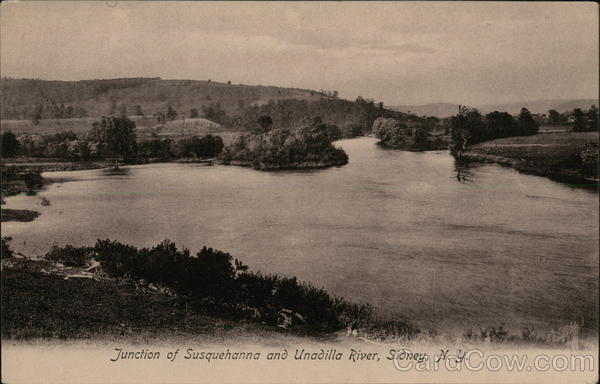 Front: *** Junction of Susquehanna and Unadilla River, Sidney, N. Y. Back: Published by B. E. Pudney. Made in Germany. No. 1045 H. Post Card & 77586