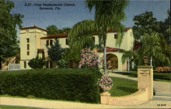 Front: S-27-First Presbyterian Church, Sarasota, Fla. TIRST PRESEYTER CHURCH 6B-H505 Back: M. E. RUSSELL, SARASOTA, FLA. 50