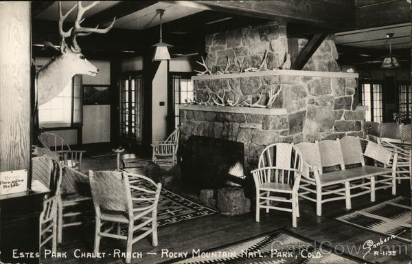 Front: Drop Packages Beld ESTES PARK CHALET RANCHROCKY MOUNTAIN NATL. PARK, COLO. Panberm R-1155 Back: 1 PLACE 1.70