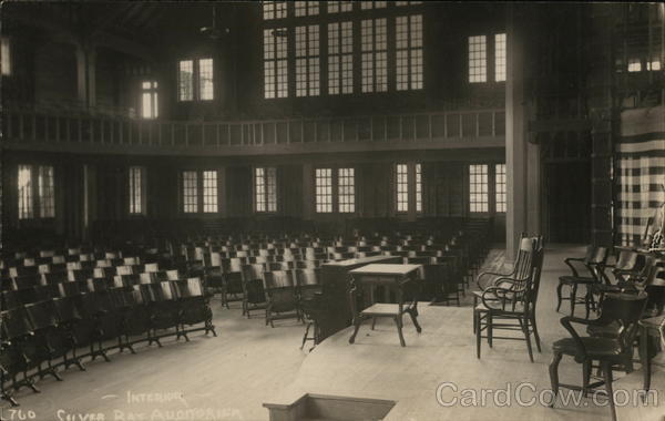 Front: INTERIOR 760 SILVER BAY AUDITORICK 70 Back: (ORIGINAL PHOTOGRAPH) PUB. BY J. S. WOOLEY, BALLSTON SPA, N. Y. 1,00 ◄ ANO A AZ O A NO A