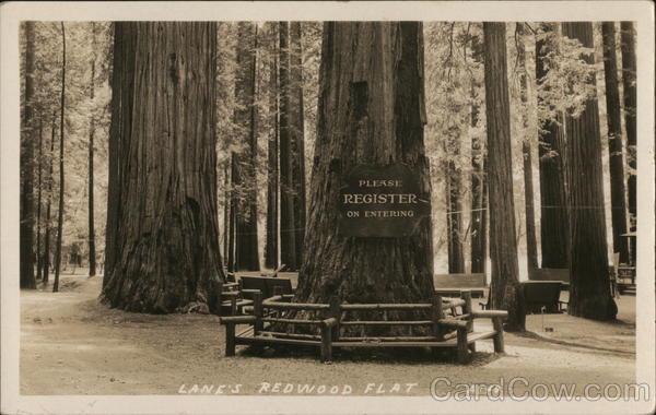 Front: PLEASE REGISTER ON ENTERING LANE'S REDWOOD FLAT A148 Back: AZOR А PLACE A 2 STAMP AZOR ANOE <NO=