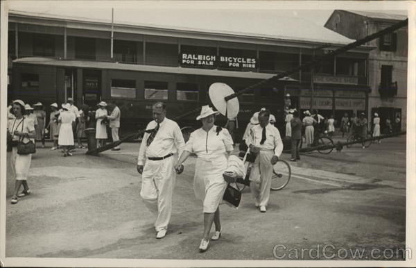 Front: NIST BE RALEIGH BICYCLES FOR SALE FOR HIRE AILWAY THE SMOKE SHOP COLOFINA AMCA CIDARA JAMAICA CIGARE HAVIA CICARS DUNHILL PIPES Back: "ferrania,, 10/10